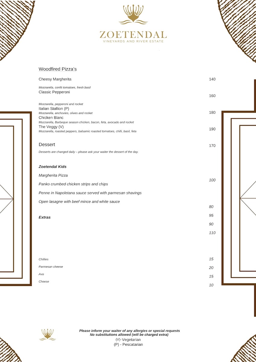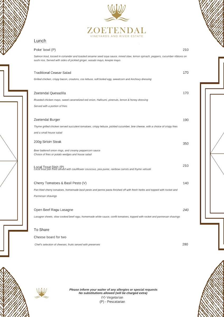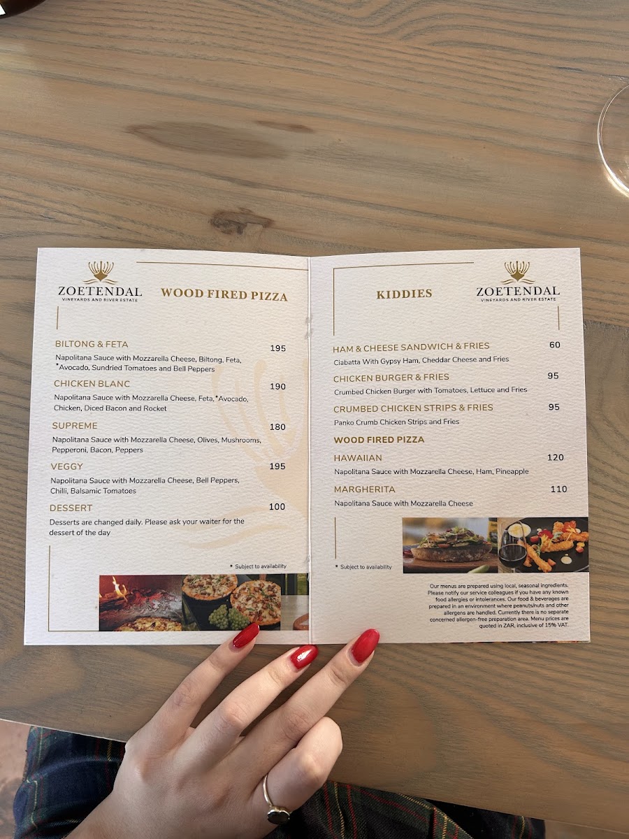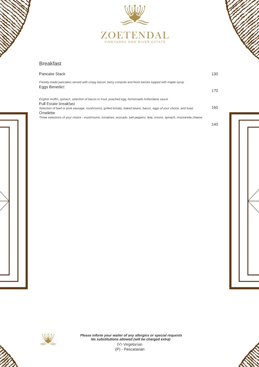 Welcome to Zoetendal Vineyards & River Estate, a hidden gem nestled in the picturesque Moddervlei Farm, South Africa. This enchanting destination is perfect for wine lovers and nature enthusiasts alike, offering stunning views and a relaxed atmosphere. At Zoetendal, you'll find a curated menu that includes delightful breakfast and lunch options, perfectly complemented by their exquisite wine tastings. Customers rave about the attentive service, highlighting the warm hospitality from the staff, which makes every visit comfortable and memorable.